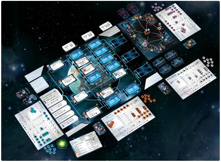 The game is played over a variable number of rounds until a number of game-end achievements are collectively claimed by the players. The winner is the faction with the most victory points, which are obtained by researching technologies, improving their economy, controlling and colonizing systems, and completing various achievements and events throughout the game.