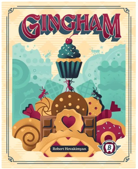 Gingham is a tricky game of confection connection. In this game, players position their queens around the gingham picnic blanket and deploy their ants to connect sweets and claim the stockpiles they create.