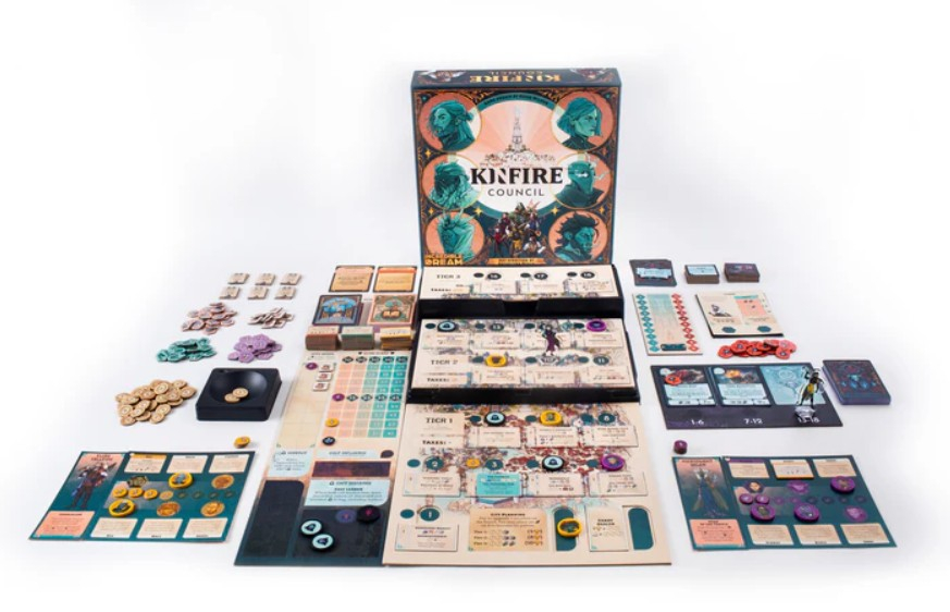 Kinfire Council is a competitive game of strategy and politics. As a member of the Council, you've been charged with rebuilding the great city of Din'Lux and defending it from the dangers of the Starless Nights.