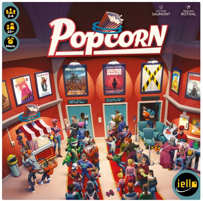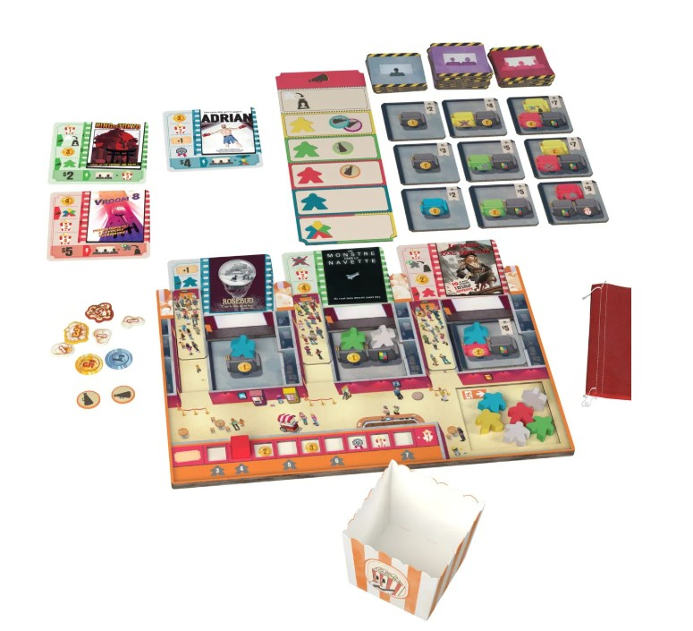 In Popcorn, each player manages their own movie theater and tries to show the best combination of movies in order to attract guests to their seats.