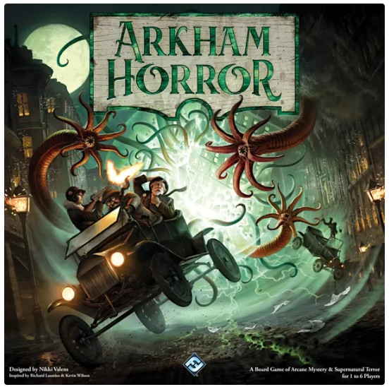 Arkham Horror (Third Edition) is a cooperative board game for one to six players who take on the roles of investigators trying to rid the world of eldritch beings known as Ancient Ones. Based on the works of H.P. Lovecraft, players will have to gather clues, defeat terrifying monsters, and find tools and allies if they are to stand any chance of defeating the creatures that dwell just beyond the veil of our reality.
